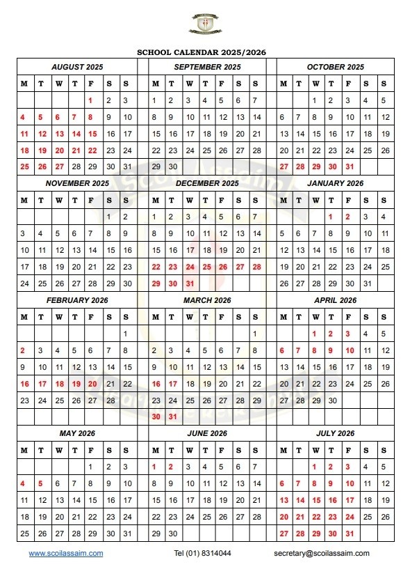 If you would like to print an A4 copy of our school calendar 2025-26 please click here.